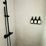 Daire, denize bakıp teras, düz ekran televizyon gibi olanakları sunan odalara sahiptir.
